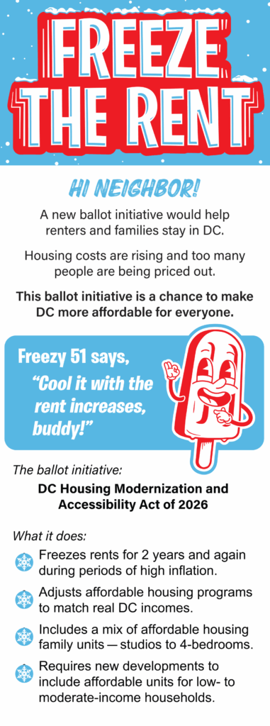 Housing costs are rising and too many people are being priced out. Our ballot initiative would help renters and families stay in DC.